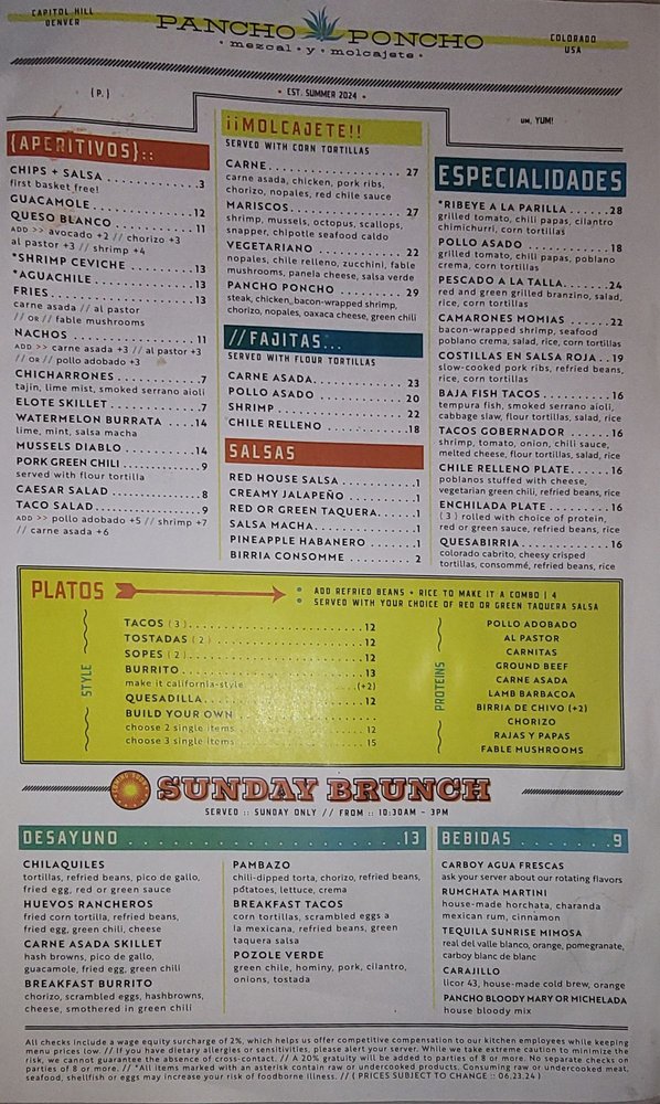 Welcome to Pancho Poncho, your premier destination for a vibrant taste of Mexican cuisine in Denver. Located at 400 E 7th Ave, this lively eatery shines with its commitment to freshness and flavor while accommodating diverse dietary needs including pescatarian options.